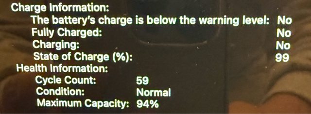 電池94% / 循環次數: 59