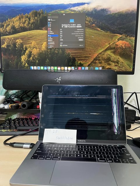 螢幕破裂,無法正常顯示,外接螢幕可正常使用