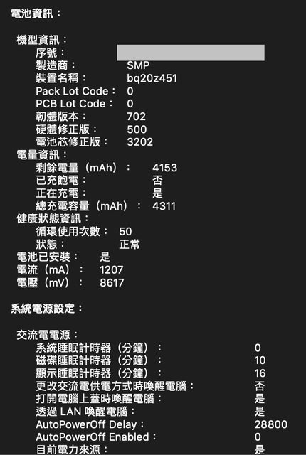 Macbook規格及電池資訊