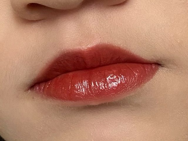 鏡光唇膏#BR 787如其名,就是帶有鏡面感的深棕紅色