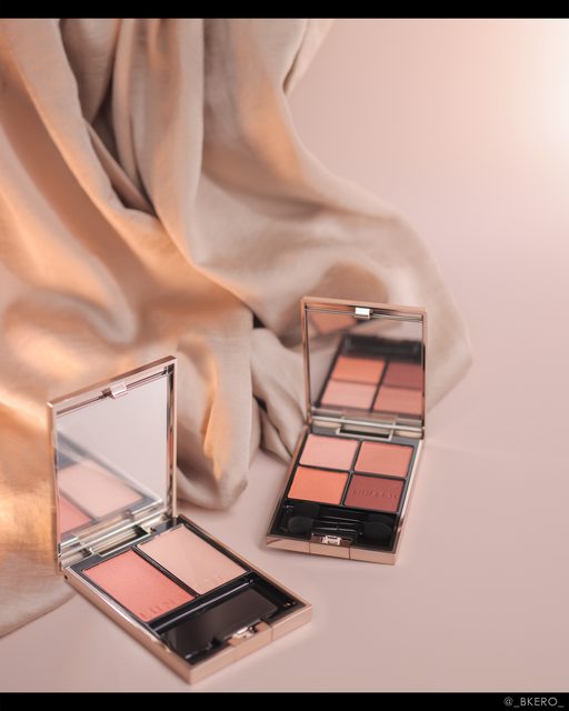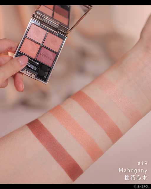 這是一盤沒有配置強烈鑽石,卻透過珠光營造出濕潤桃花木的眼影盤