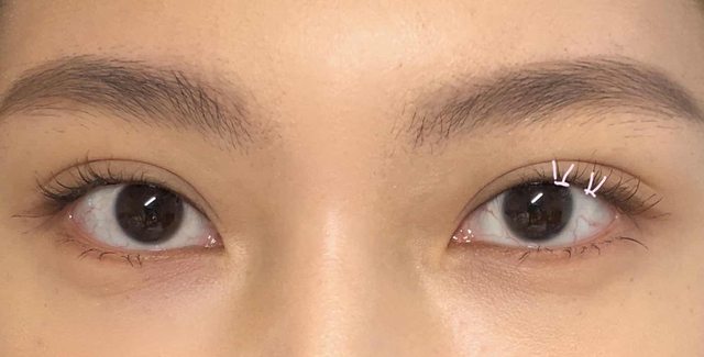在眼球上方及靠近尾端加幾株單簇睫毛~