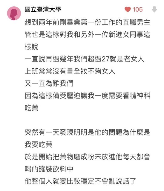 噓 risingheart: 念到台大還對別人亂下藥? 要不D卡粉頭水準 要不D卡都 11/22 11:32