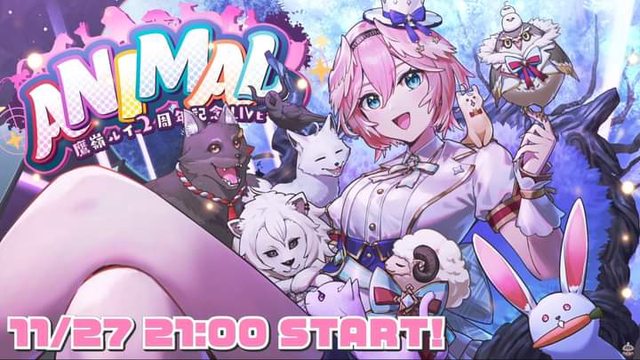 鷹嶺琉依的兩周年 LIVE 主題 ANIMAL 公開,將在 11 月 27 日台灣時間晚間七點五十五分左右開始(長度+怕 LIVE 任何意外所以提前一點點),當日還有重大發表