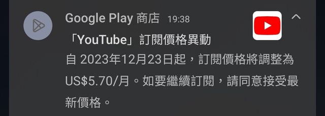 剛剛收到play訂閱消息