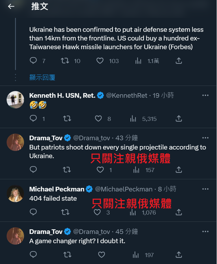 推 bunjie : 等鷹式飛彈開始擊落俄軍時 那些帳號就閉嘴了 07/17 10:23