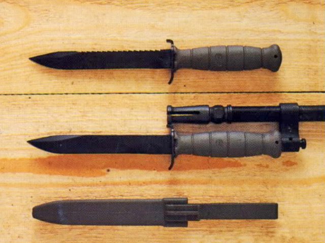 這些刺刀都必須先在槍管上裝專用夾具,才能把刺刀掛上去。