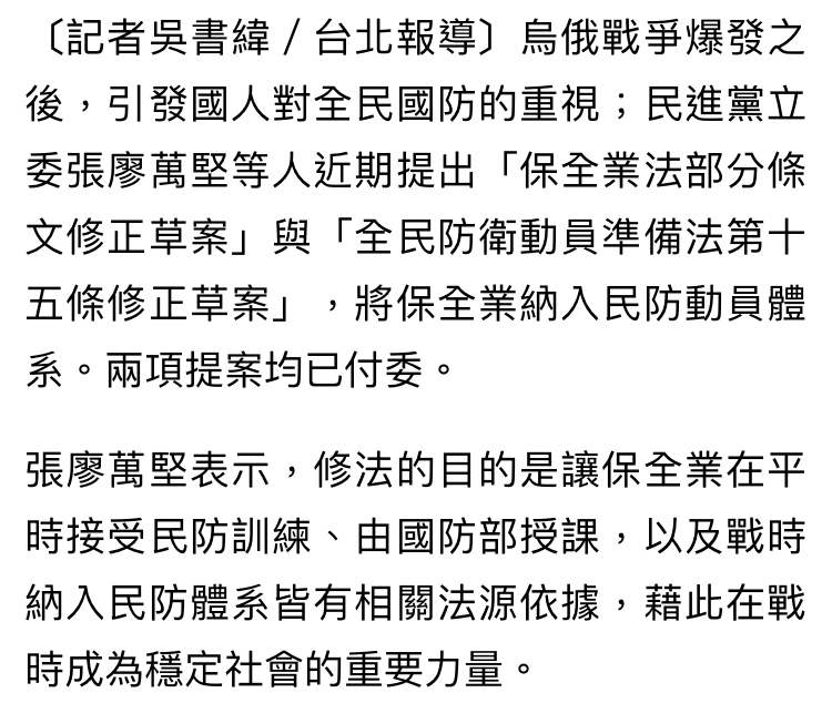 peterlee97 : 型企業要組織民防團? 這個如果戰時或災時停止生產 09/05 12:48