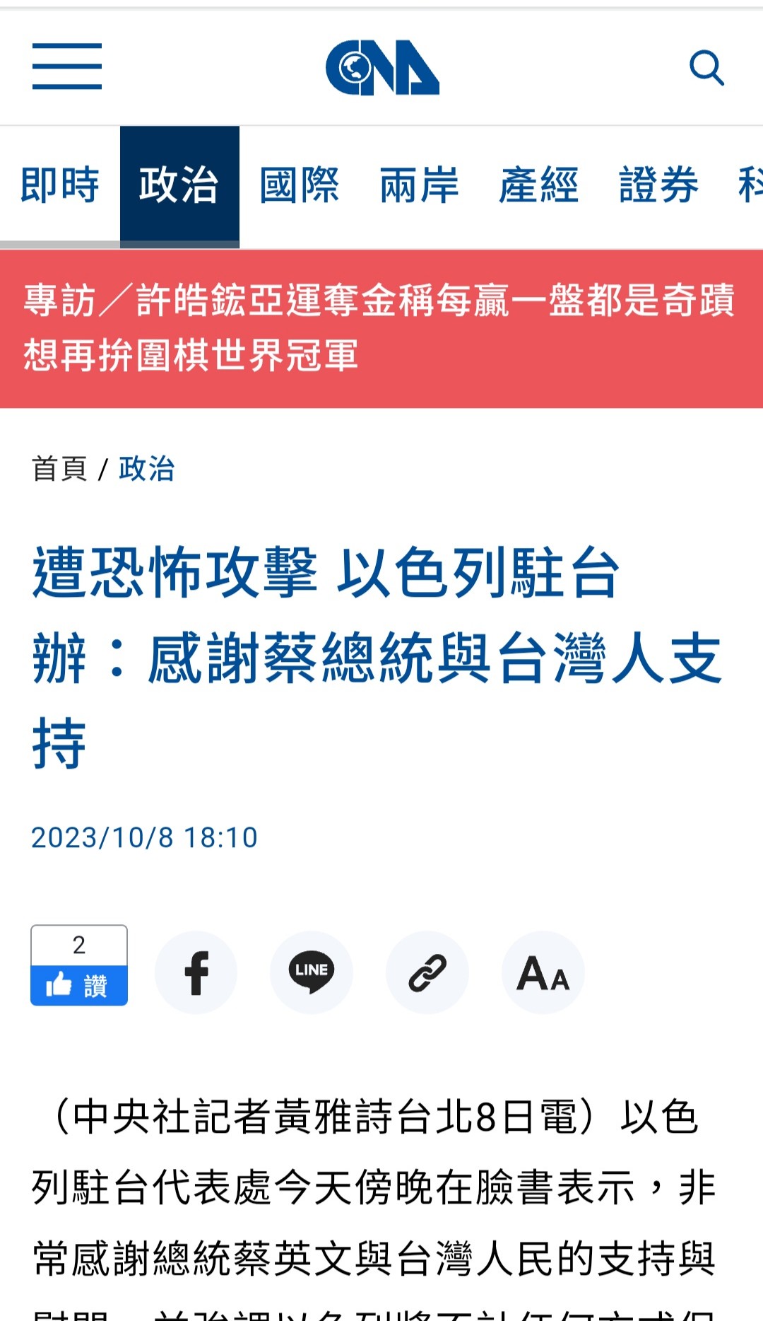 推 AetherG : 哈馬斯釋出的消息,中時聞到後就急著見獵心喜得抄 10/14 21:21