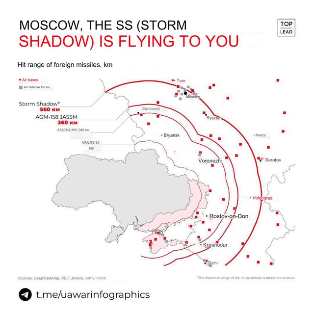 的「風暴之影」飛彈對俄羅斯深處進行遠程