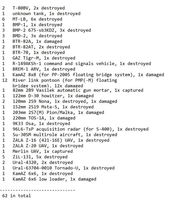 運兵車和 2 輛摩托車)被摧毀,11 輛 BMP