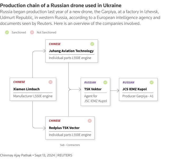 【俄使用中國引擎和零件生產新型自殺無人機】