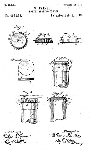 https://i.imgur.com/5aeBKOZ.png 皇冠式瓶蓋專利(美國專利468,258號)
