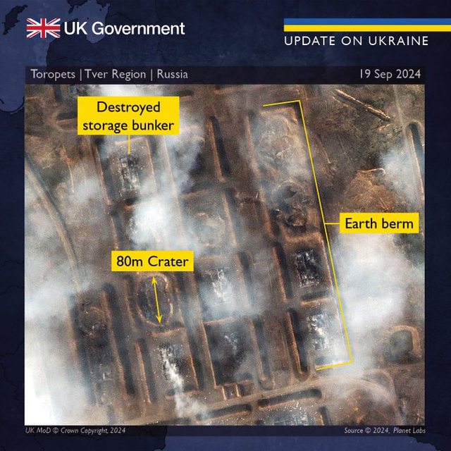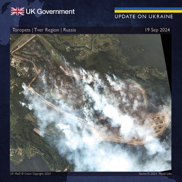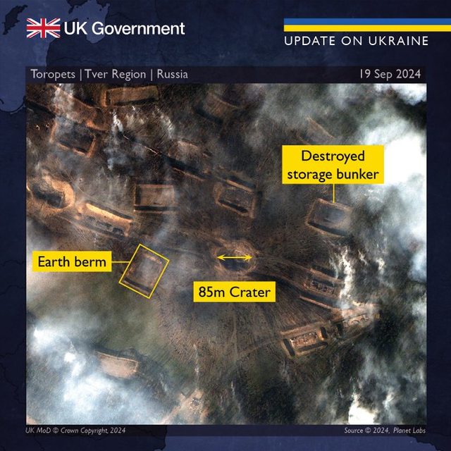 看到 RU 719 砲兵彈藥基地發生強烈爆炸(2024 年 9 月 21 日報)。