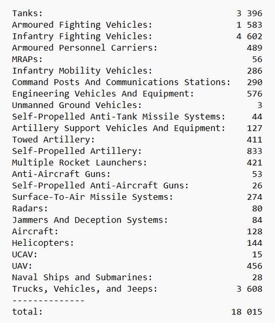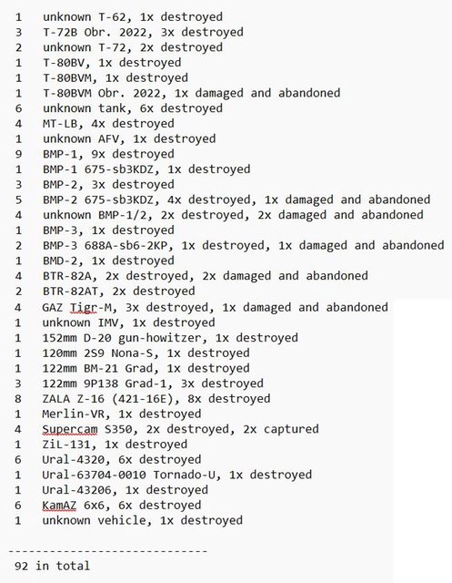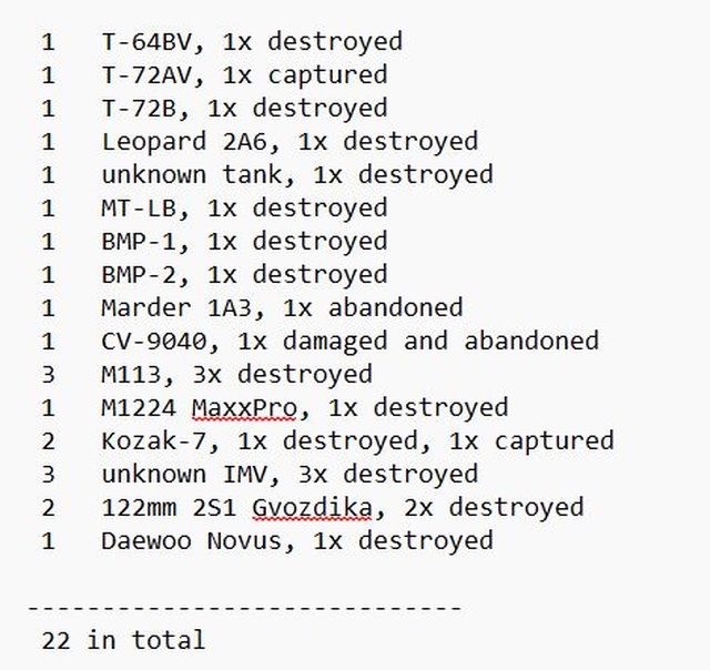 目視確認損失軍事裝備統計 2024.09.20 ~ 09.22