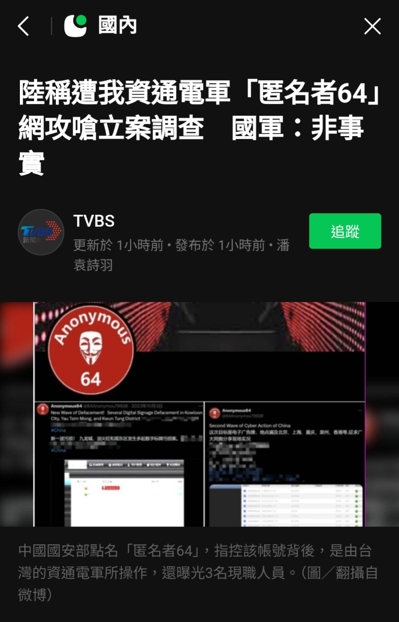 → jobli : 媒體報導國防部資通電軍人員於漢光33號演習期間, 09/23 11:30