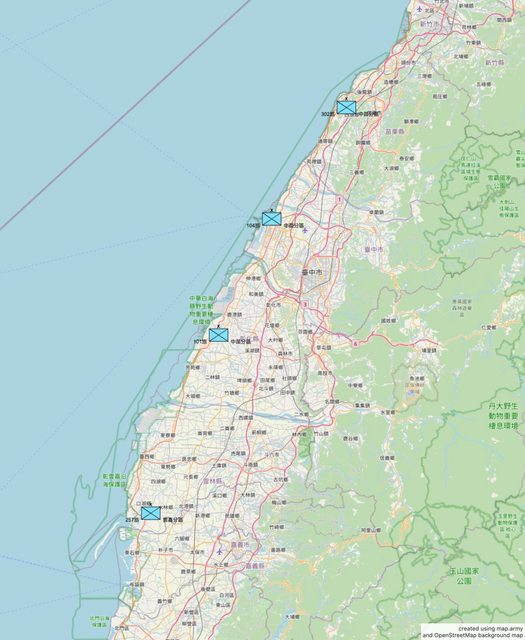 06旅防區)、龍港-西勢(302旅防區)、大安-龍井(104旅防區)、麥寮-布袋(257旅