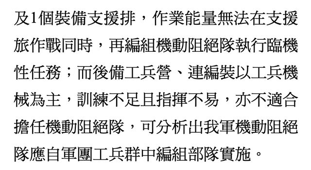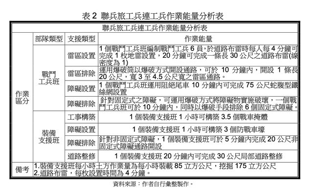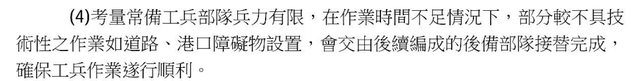 工兵連的現況”,工兵群已然無力為守備旅提供可滿足原有規劃作戰需求的工兵支援。