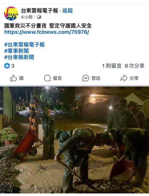 → jobli : 第四作戰區今(4)日持續配合地方政府災後復原需求 10/04 18:04