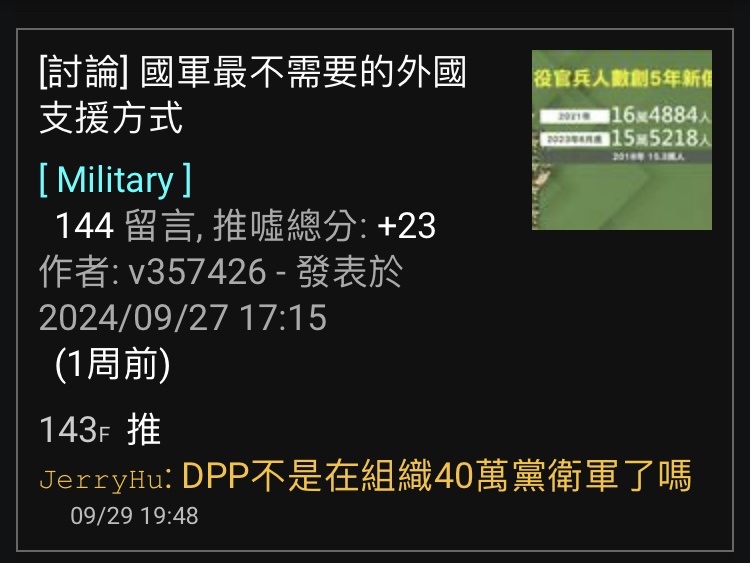 噓 JerryHu : 奇怪 本板是網軍充斥嗎 對內認知作戰這麼嚴重10/05 15:12
