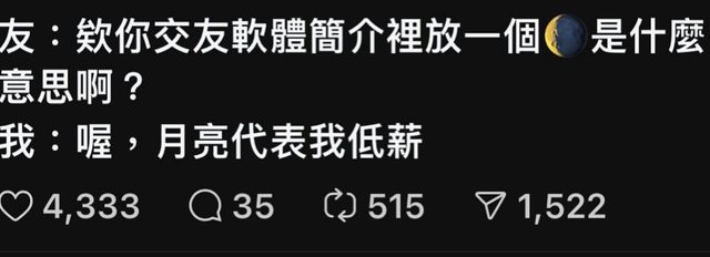 推 KleinSchwarz: 月亮代表我低薪10/06 13:40