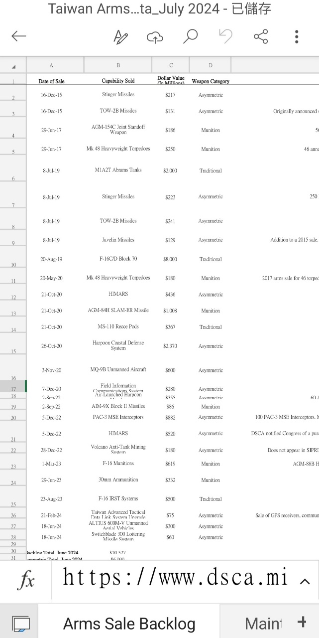 → jobli : 億美元。該智庫將軍售項目分為傳統武器、不對稱作 10/08 09:20