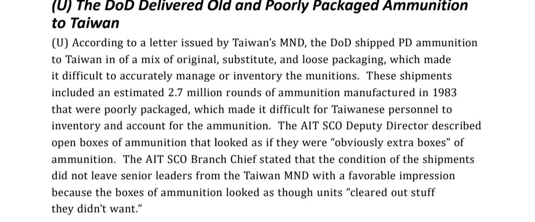 推 jobli : 根據台灣國防部的信,台灣收到270萬發彈藥,其中有 10/08 12:47