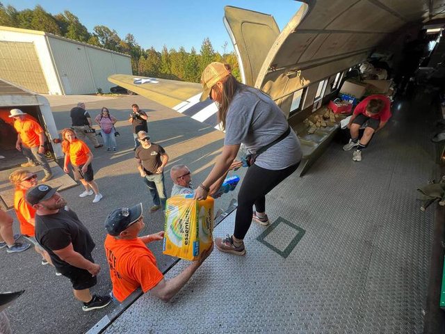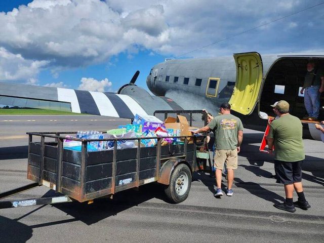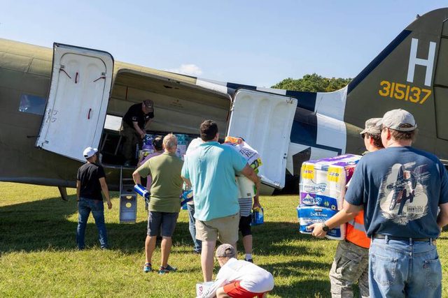 兩架曾參與了80年前的諾曼地登陸的骨董級C-47運輸機,於海倫颶風後,加入災區物資補