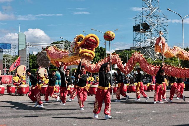 今年的國慶表演節目「龍騰鼓舞 華藝雙十」由埔光龍隊、陸專戰鼓隊及李棠華雜技團