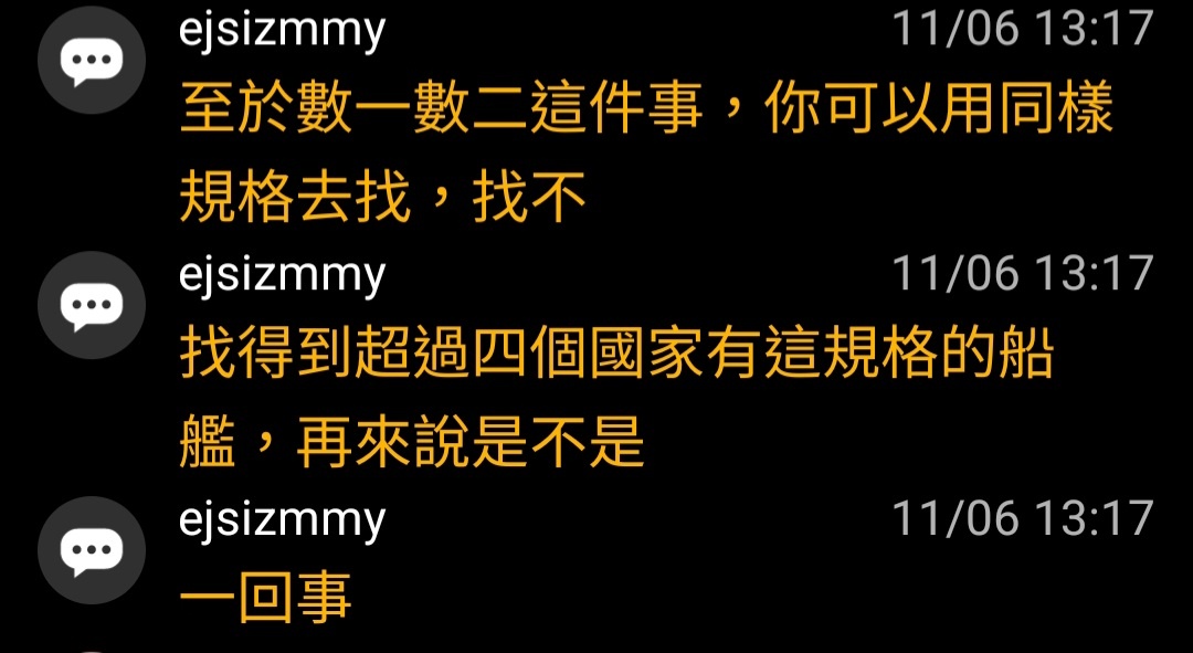 → ejsizmmy : 找得到超過四個國家有這規格的船艦,再來說是不是 11/06 13:17