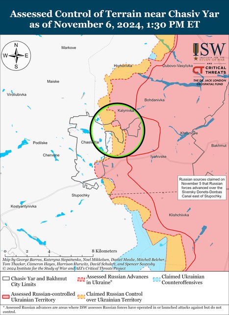 11月6日,俄軍繼續在Chasiv Yar方向