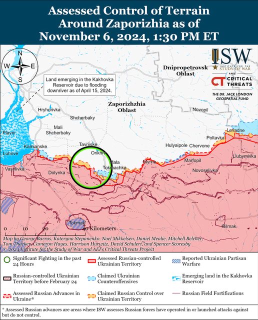11月6日,俄軍繼續在扎波羅熱州西部