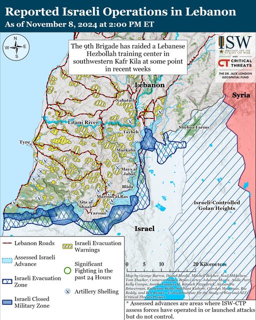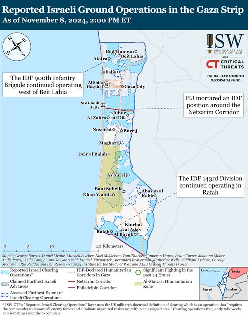 自 11 月 7 日 CTP-ISW報告以來,以色列國防軍繼續在 Maroun al Ras 進行清理行動。