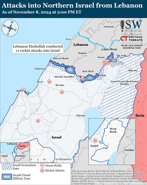 自 11 月 7 日 CTP-ISW 報告以來,真主黨已對以色列發動了至少 11 次火箭襲擊。