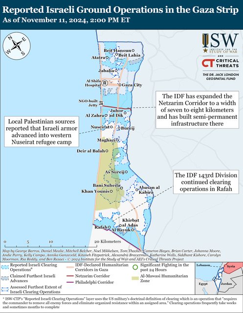 11 月 11 日,以色列國防軍第 162 師可能繼續在加薩走廊北部進行清理行動。