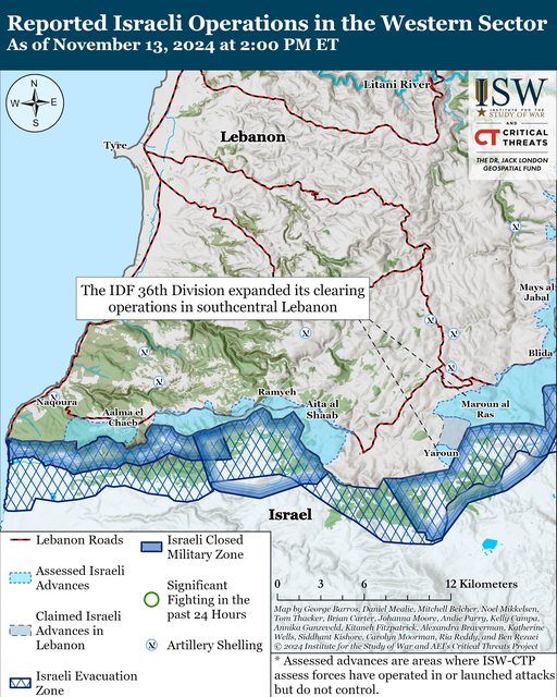 11 月 13 日,以色列國防軍第 36 師擴大了在