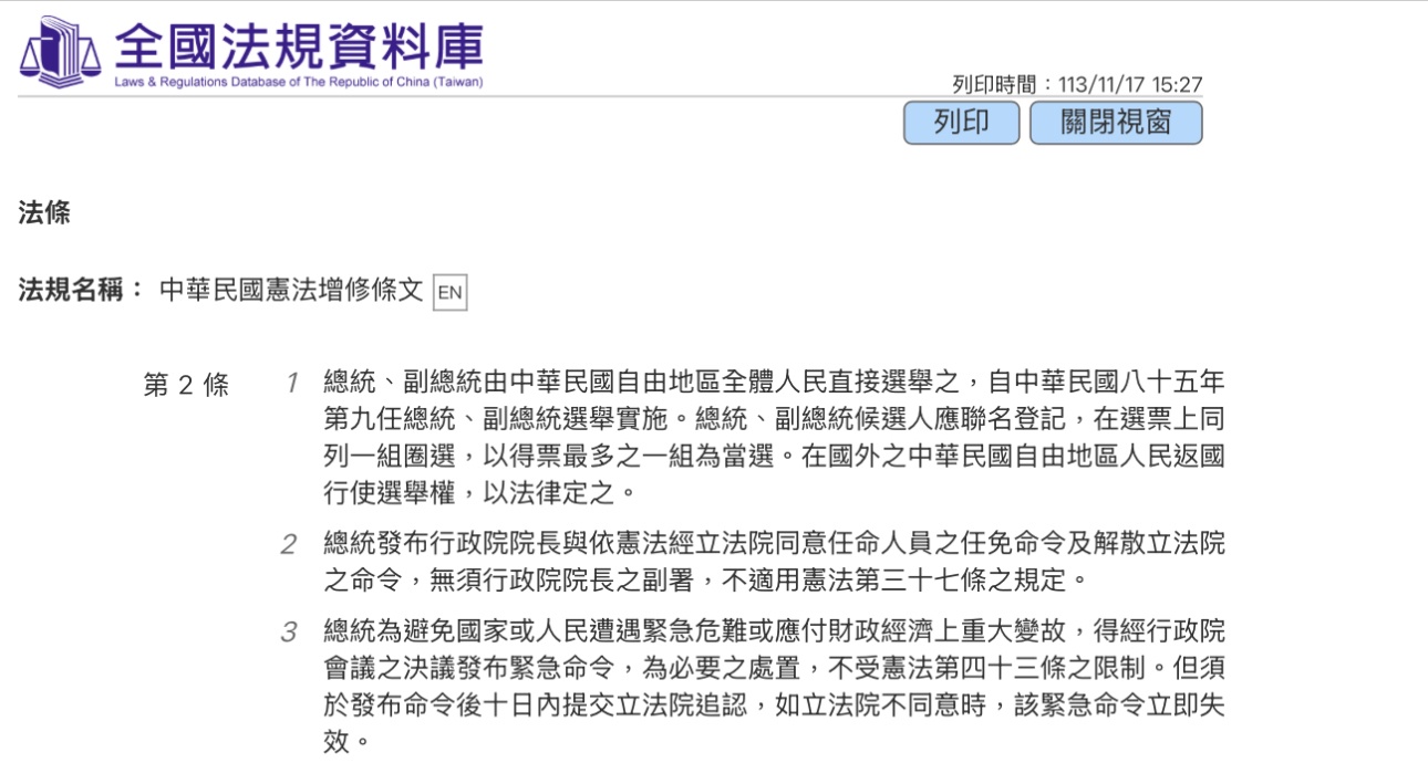 → chordate : 你知道根據國防法,總統要發佈緊急命令 11/17 15:21