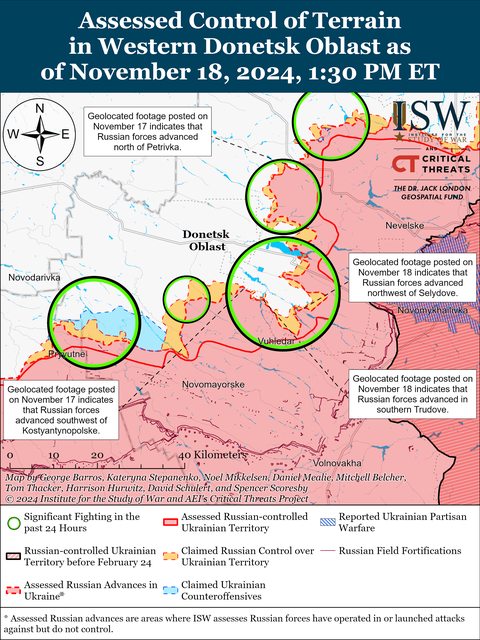 ISW 評估認為,在 11 月 16 日至 17 日的