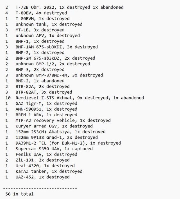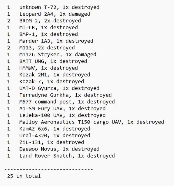 目視確認損失軍事裝備統計 2024.11.17 ~ 11.19