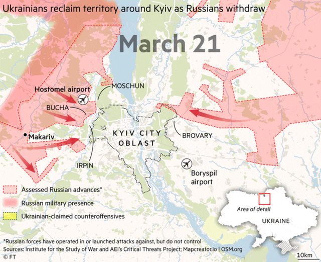 2022 年 3 月:俄羅斯未能佔領基輔