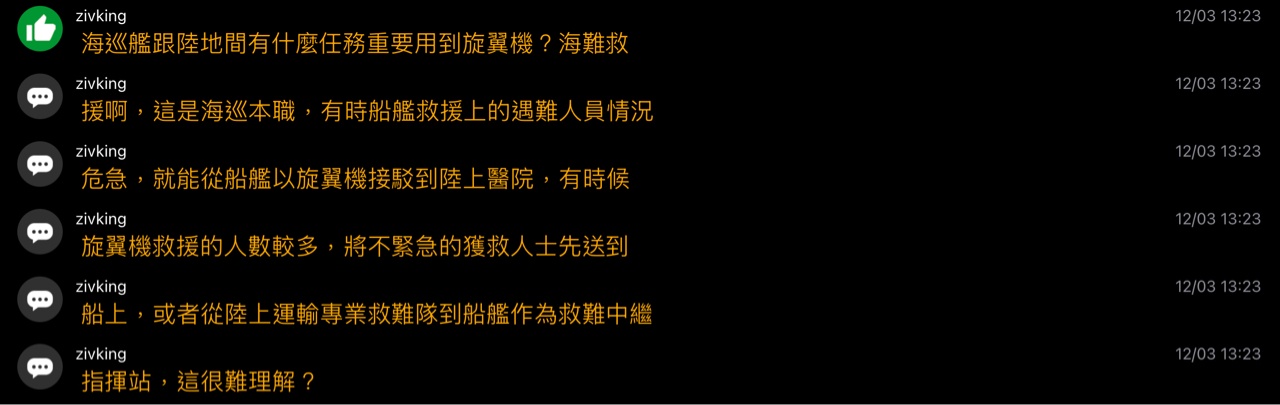 → zivking : 戰搜救不是只有吊掛後送而已),並作為承平時期海 12/03 15:45