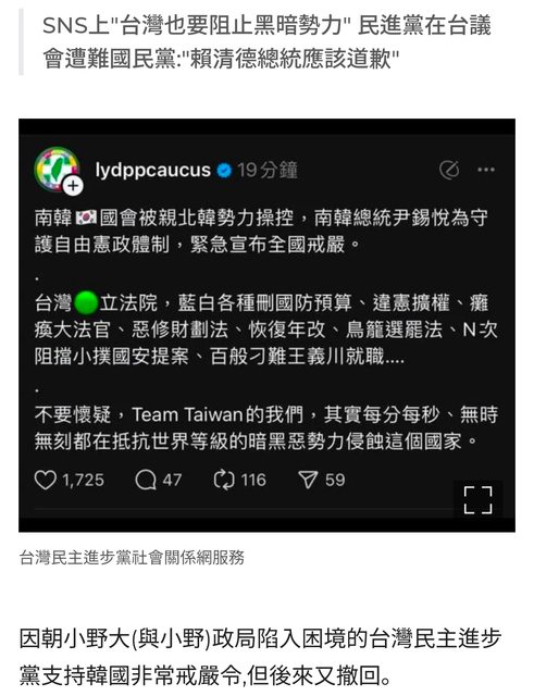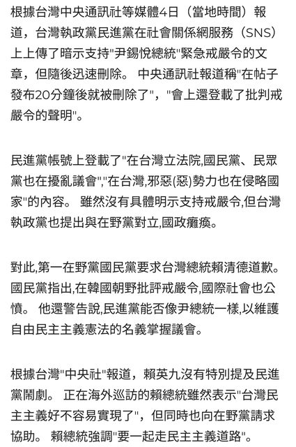 文章中明確的提到 沒有具體明示支持戒嚴令