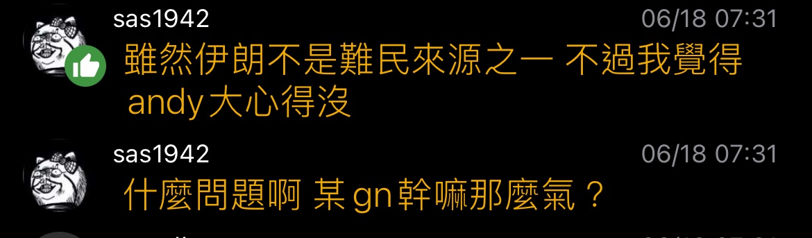 推 gn02118620 : 啥跳針 跳針的不是你們嗎 回應伊朗不是造成難民的 06/18 07:46