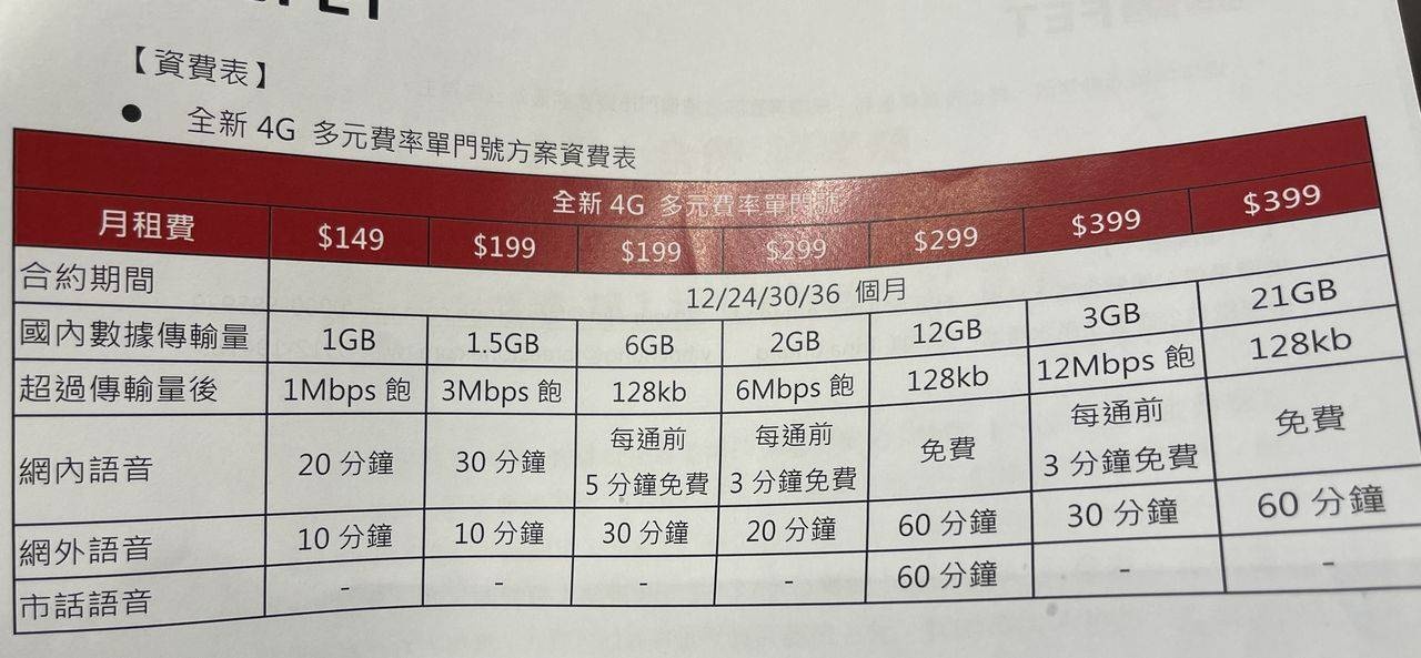 推 jay0215 : 亞太11+199(21m)+中華199(1Gb首年+1Gb並-50)+188(8 08/19 09:21