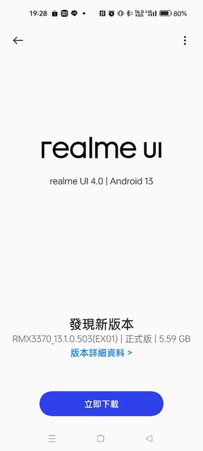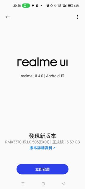 版本碼是RMX3370_13.1.0.503(EX01),大小為5.59GB