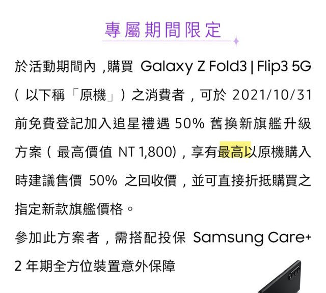 → mdk3500 : 當初S22的活動頁面我記得也是說保證原機50%價格折08/19 05:13