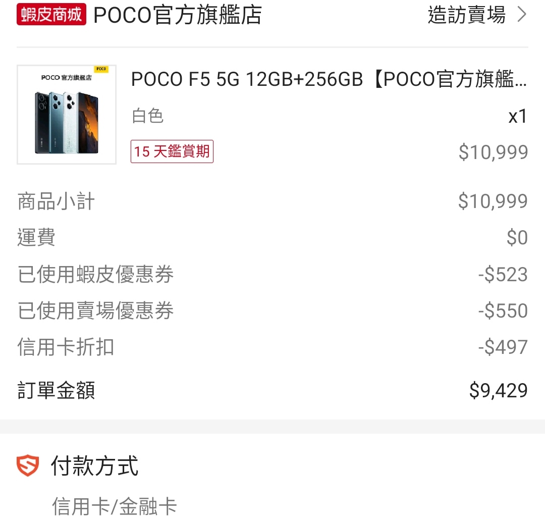 → ls4860 : poco f5 pro 小米商城還有 折750 找個信用卡有2%的 08/20 12:57