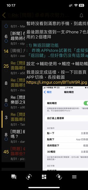 推 JeffreyCorn : iPhone 左右滑返回不是每個app都支援,甚至沒有因 09/01 11:21