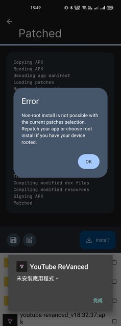 → longlydreami: 建議直接安裝ReVanced Extended 09/02 20:28
