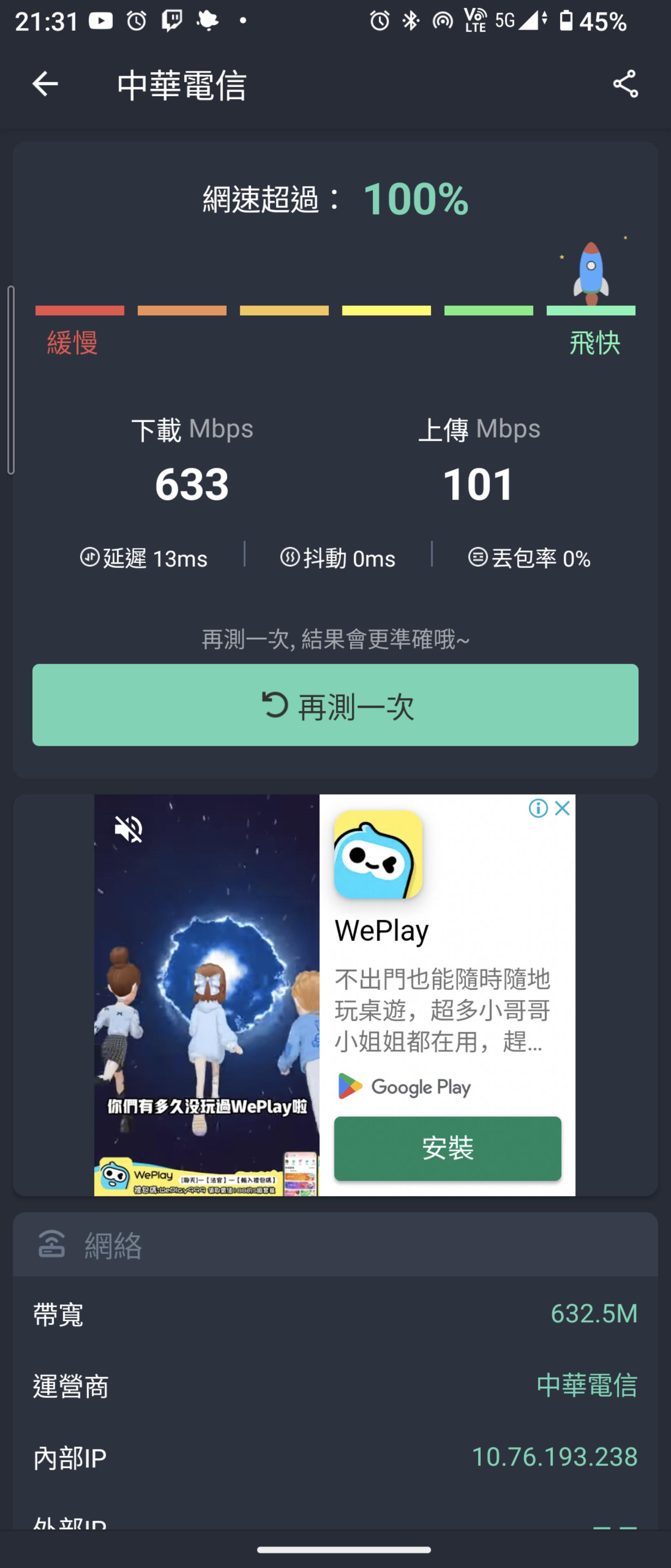 → tonyian : 速度?YouTube 在遠傳底下還限速5m,你網速再快是有 09/09 14:47